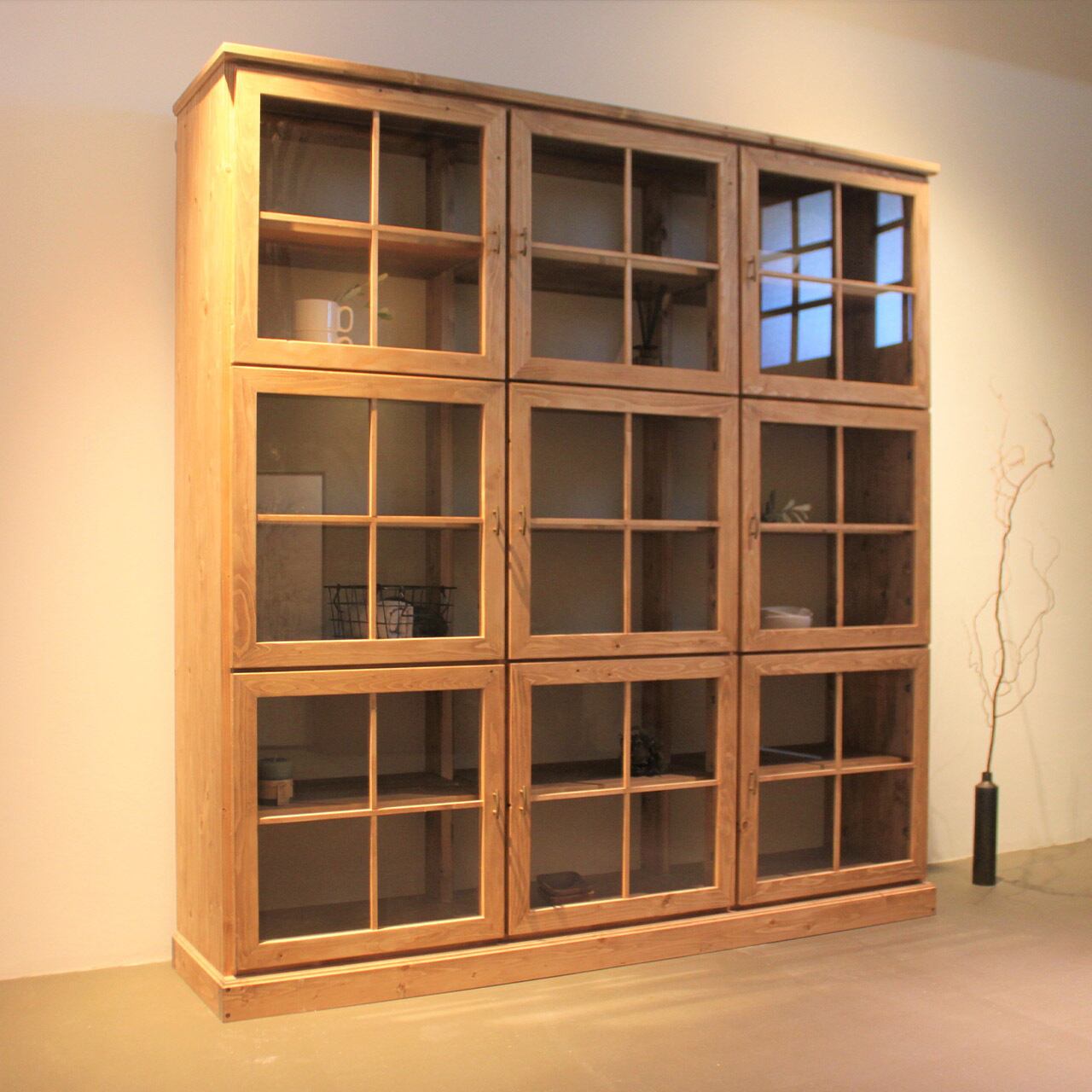 9枚に分かれるガラス張りの扉なので中の収納が一目瞭然。