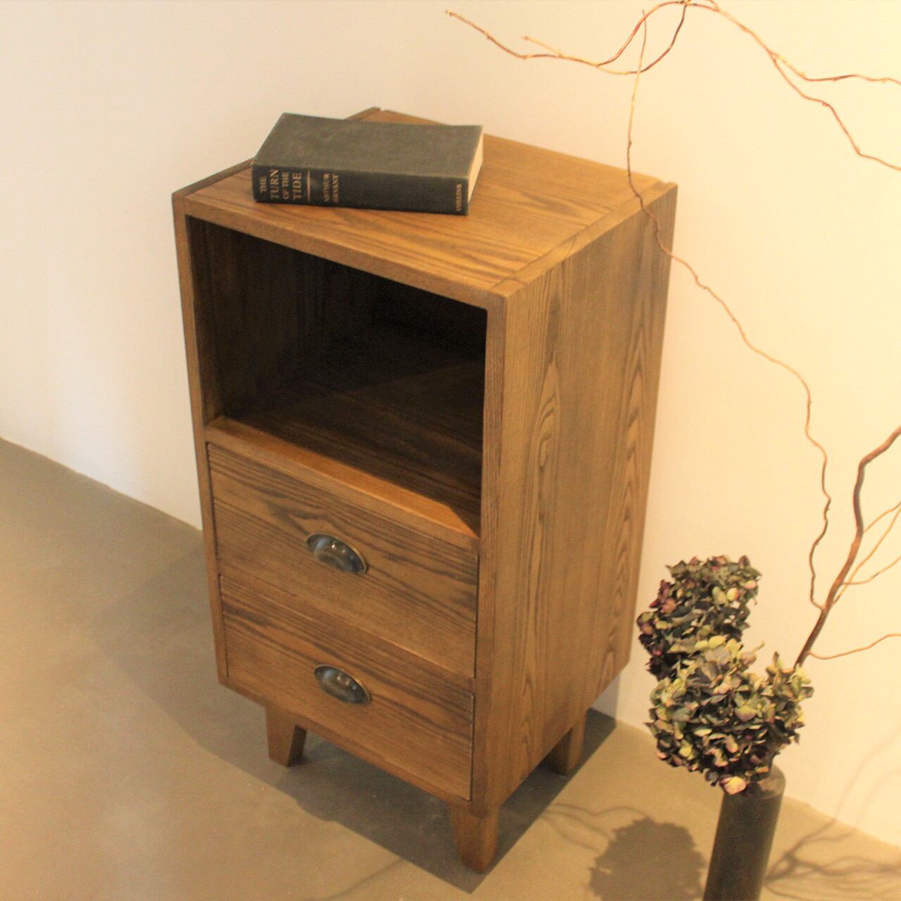 木目を際立たせ、シブい感じに仕上げました。 本や書類、パソコンなどがすぐ置けて便利です。