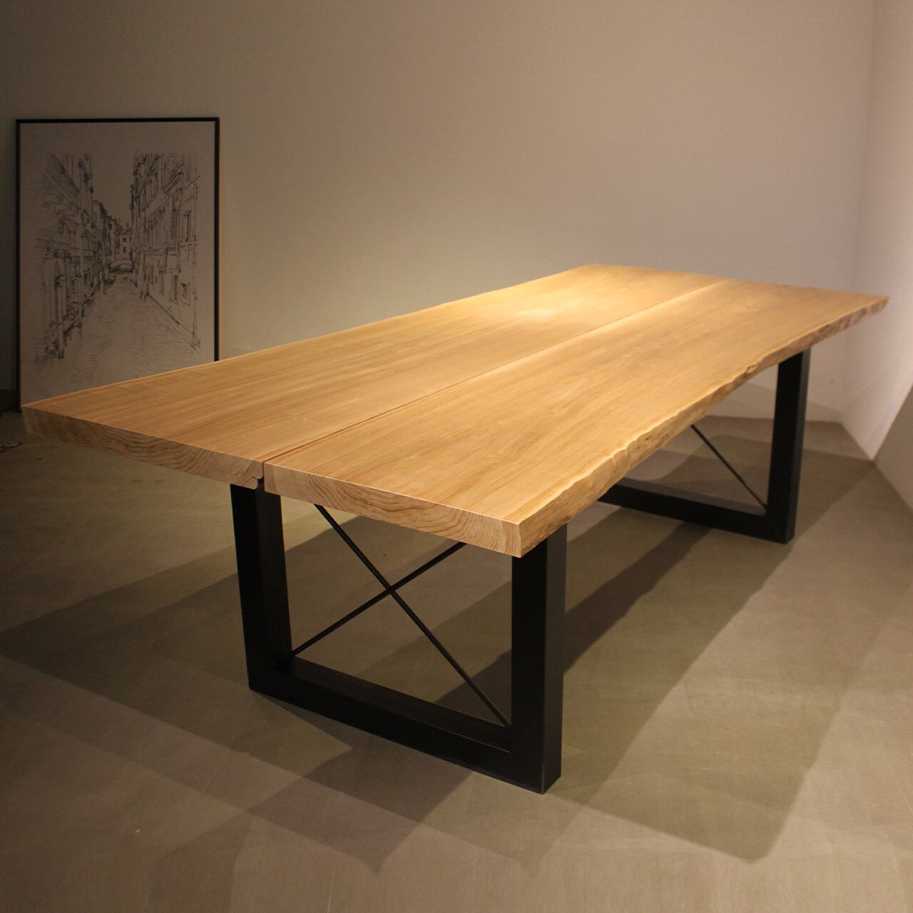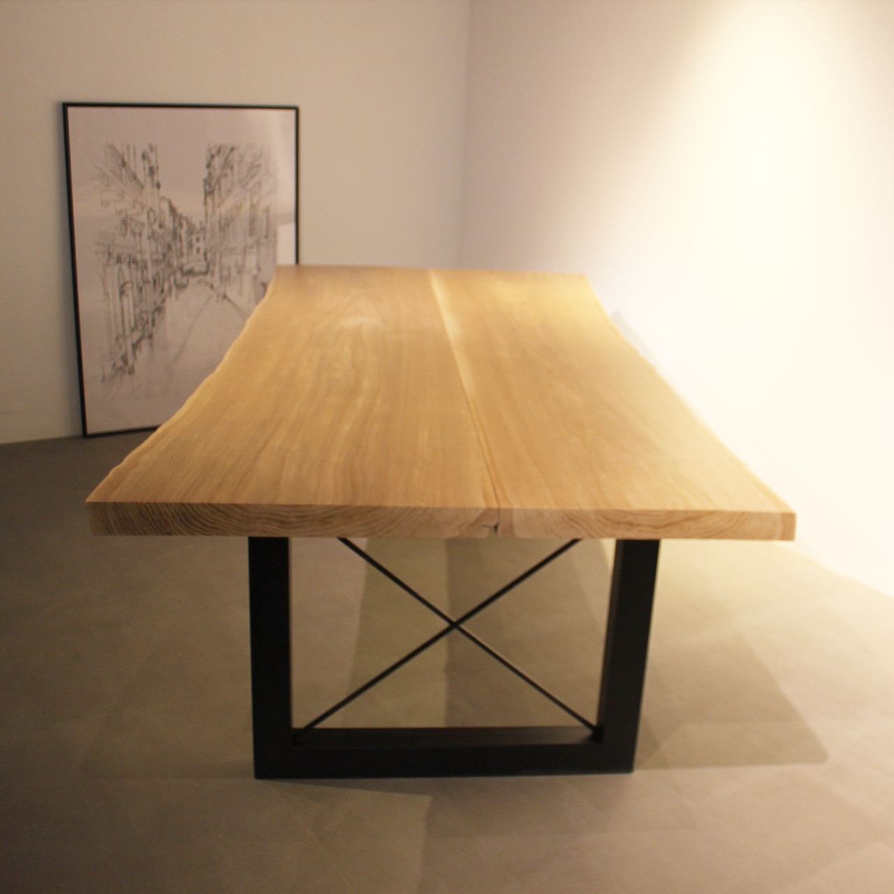 クリの無垢板2枚を贅沢に合わせたダイニングテーブル。